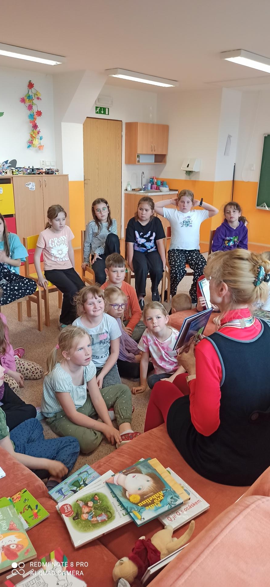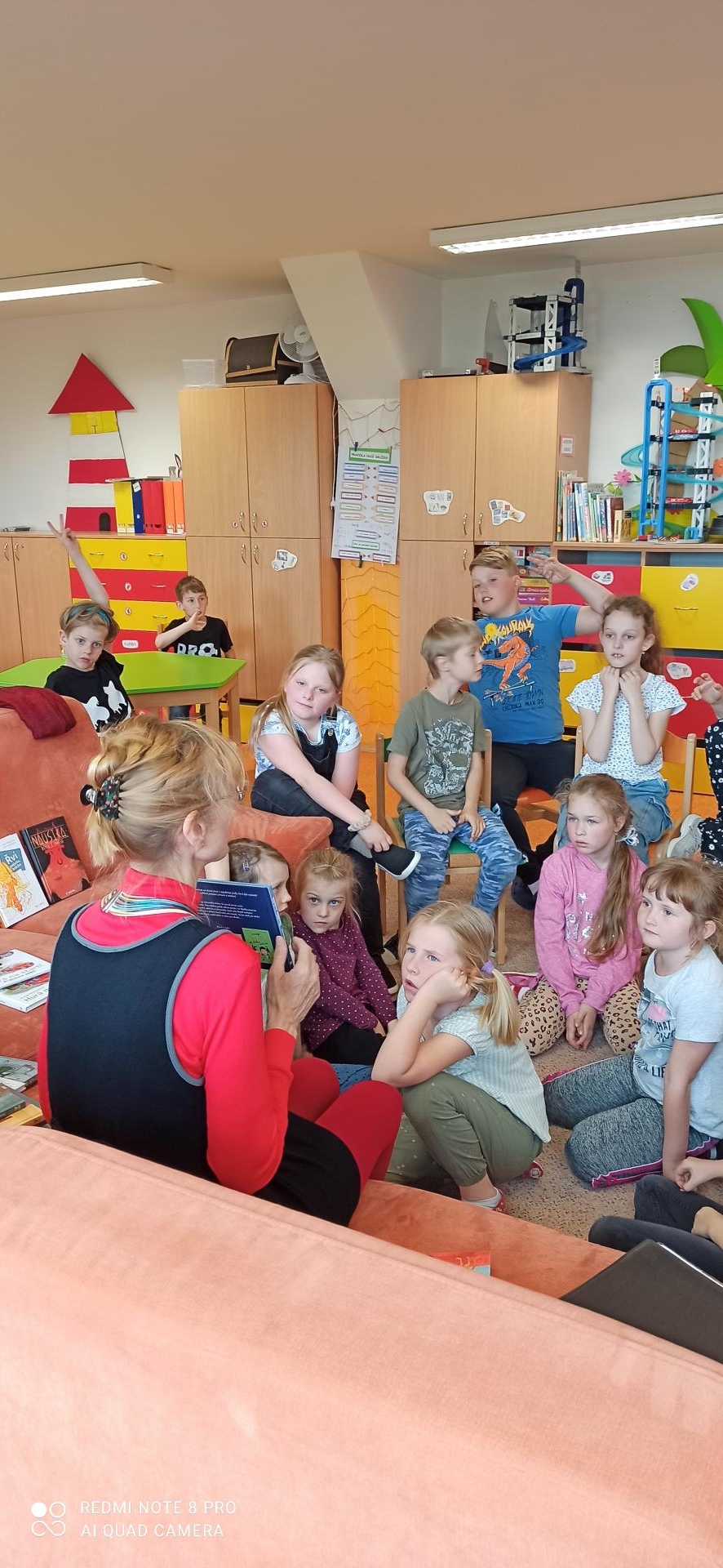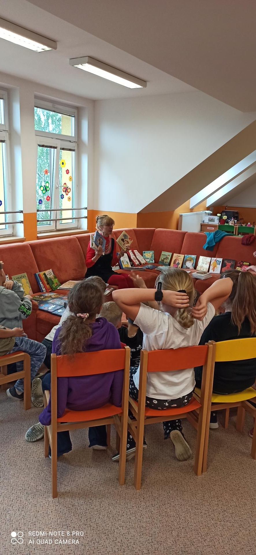spisovatelka přečetla úryvky z některých knih a s dětmi o knihách