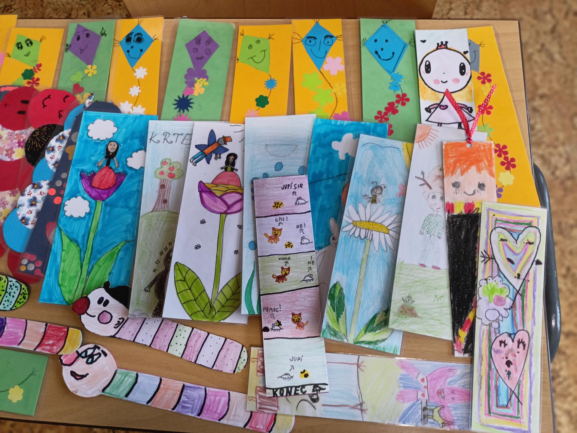 V pracovních činnostech i ve školní družině žáci vyráběli nápadité záložky do knížek. Česko-slovenský projekt Záložka do knihy spojuje školy = Záložka do knihy